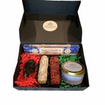 Includes Nag Champa incense used for spiritual cleansing, a large obsidian crystal used for energy cleansing and grounding, 4" White Sage, 4" Dragon's Blood Sage, and a crown chakra candle that can be burned with the intentions of gaining mental clarity and stability.