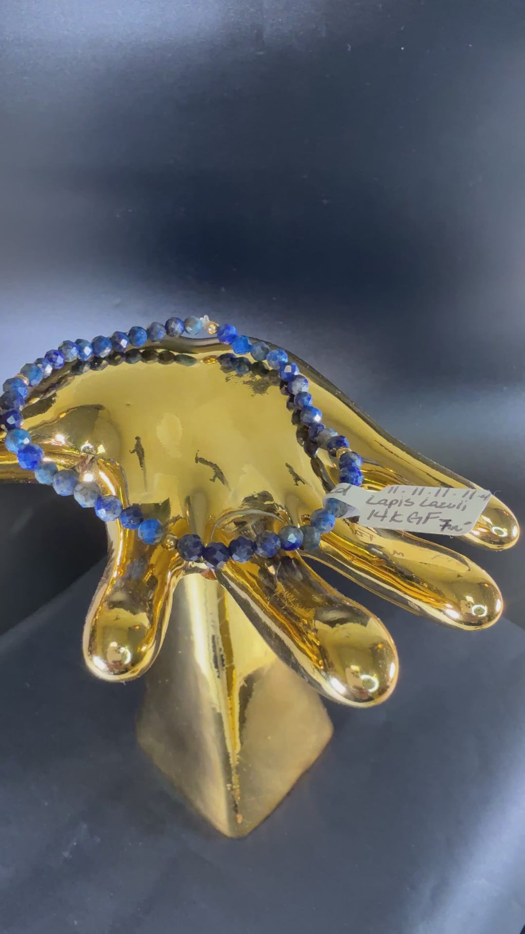 Faceted 4mm Lapis Lazuli beads add subtle brilliance while enhancing energetic depth. The faceted shape of each bead reflects principles of sacred geometry, believed to support deeper energetic integration and harmony. Accented with 14k gold-filled spacers, this luxury piece is designed to maintain its beauty—resistant to tarnishing or turning with regular wear.