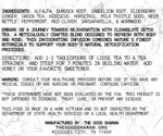 Alfalfa, Burdock Root, Dandelion Root, Elderberry, Ginger, Green Tea, Hibiscus, Horsetail, Milk Thistle Seed, Neem, Nettle, Peppermint, Red Clover, Sarsaparilla, Wormwood