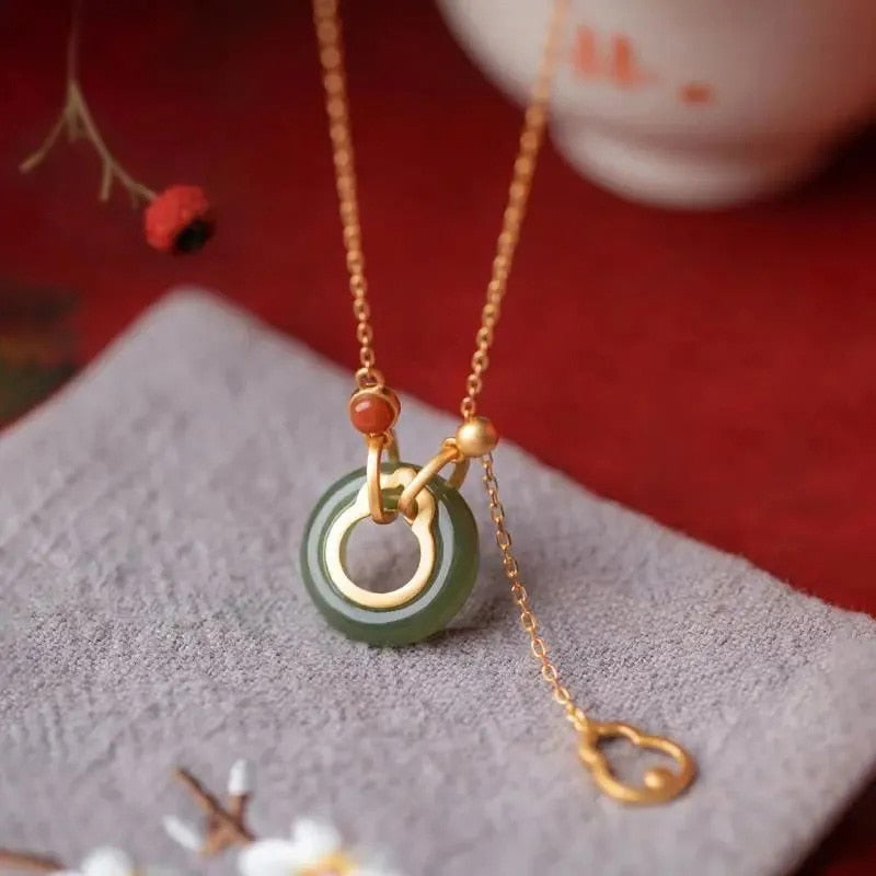 Cute and stylish jade and chalcedony gourd necklace.