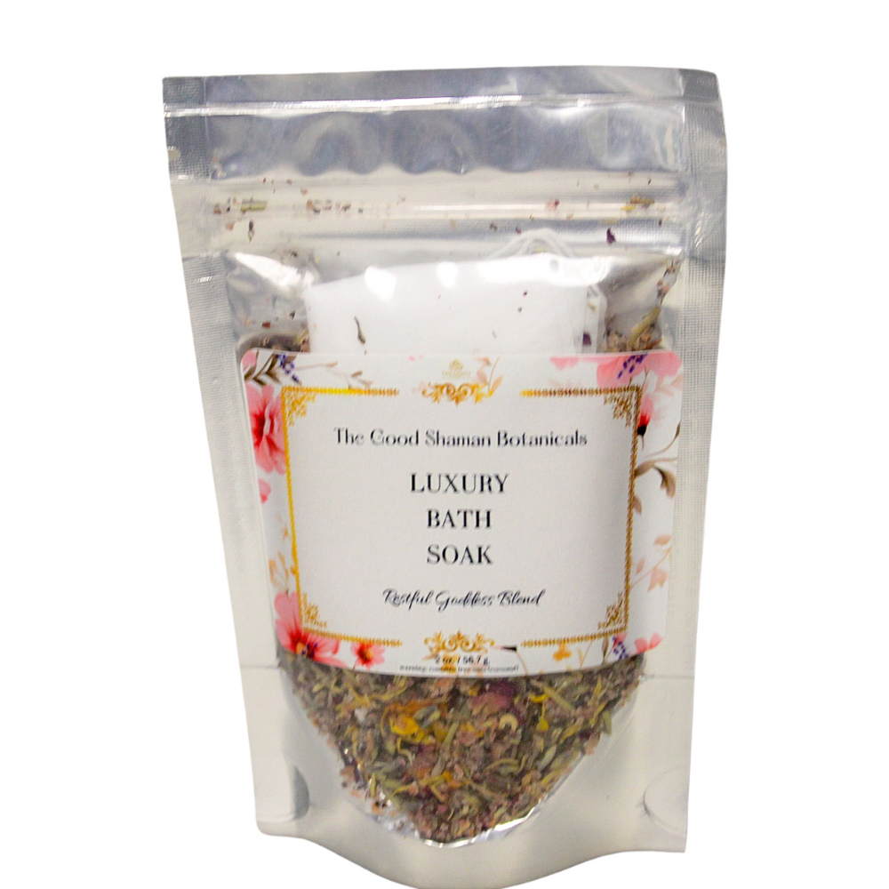 How to use: Place the desired amount of bath soak in your reusable steeping bag. Tie the bag tightly so that the contents do not escape. For best results, steep in a hot water-safe container with boiling water for 5 minutes. Pour water into your bath and enjoy! You can also place the bag directly into your bath water. Avoid letting contents of bath soak go down the drain.