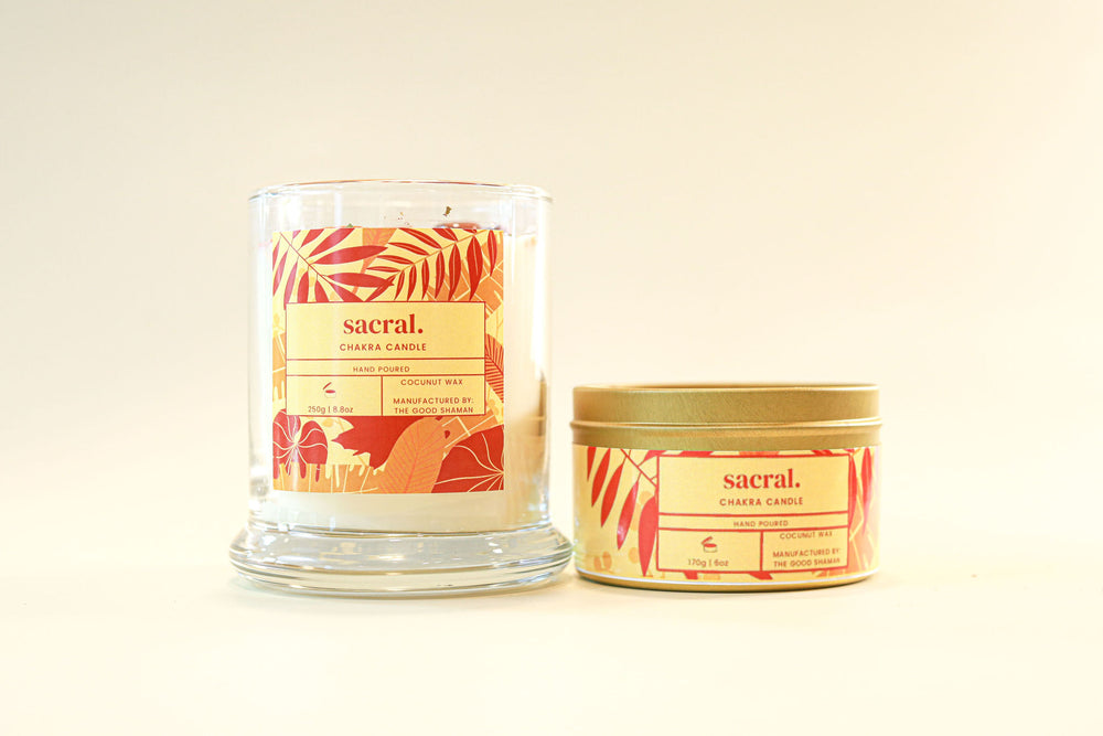 Light these candles with the intention of clearing your sacral chakra. Our candles are all-natural coconut wax blends.