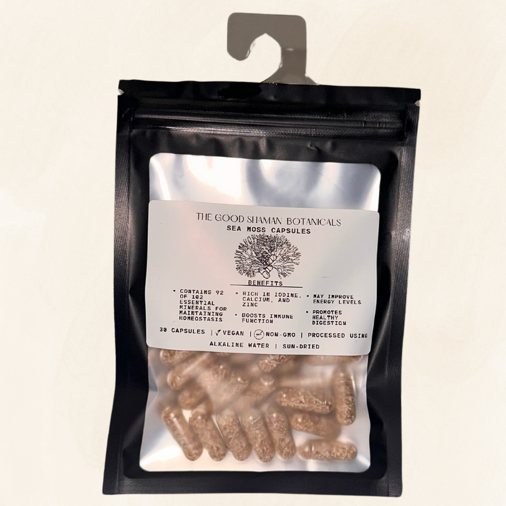Support your holistic wellness journey with The Good Shaman Botanicals Sea Moss Capsules—a natural addition to your daily routine for enhancing vitality and well-being. Traditionally valued for its role in promoting balance, sea moss provides a rich source of essential minerals to complement a healthy lifestyle.
